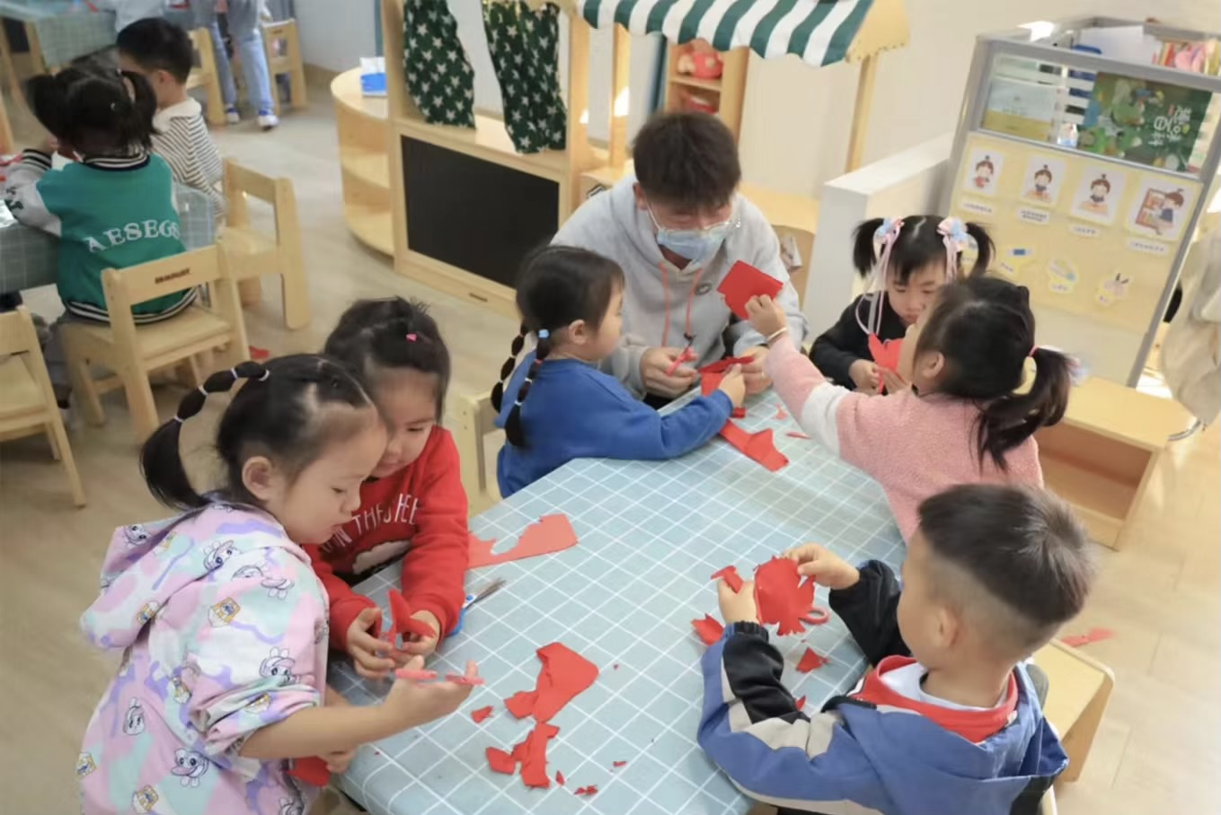 “将美术教育带入课堂,并且以小组合作的方式完成作品是一次非常有创意的尝试,能够让孩子们在充分创作的过程中,培养他们的审美能力和团队意识。”该园老师杨倩表示,安庆师大学子们此次“走心”的活动意义重大,对今后班级课堂的教学形式和设计也具有借鉴意义。