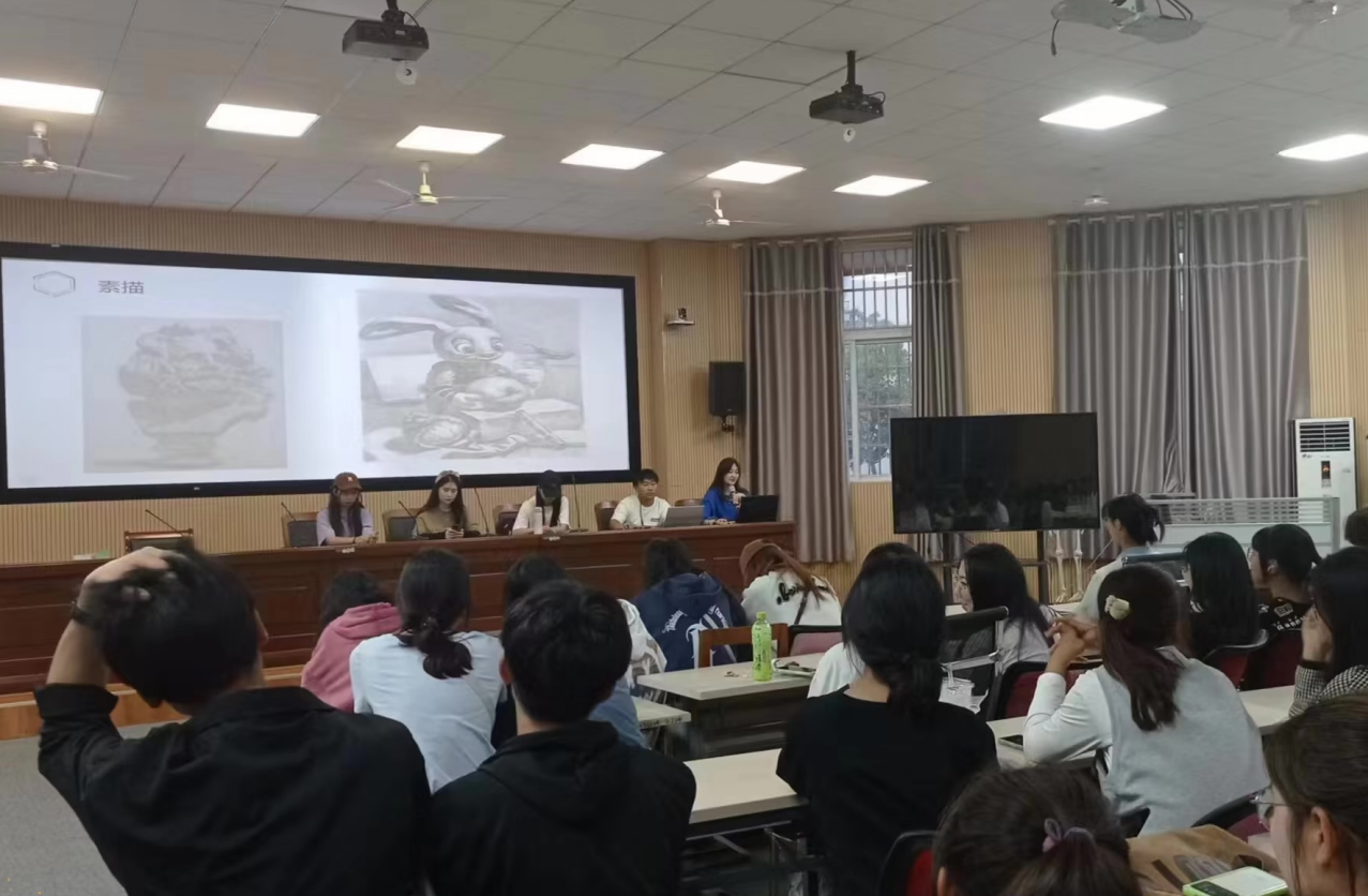 寓意深刻的卡通定格、幽默诙谐的广告动画、趣味十足的国漫短片……美术、动画专业交流会上,动画专业2021级的汪润通过视频向同学们介绍起了动画专业的“前世今生”与几种不同的动画风格。“红豆生南国,春来发几枝……”当古韵浓厚的国风动画《中国唱诗班》“登场”,同学们的目光瞬间被吸引。“我们希望通过这些视频,激发大家对专业学习的兴趣,让人感受到中国原创动画的魅力所在。”他表示,希望新生们可以从分享会中受益,今后以更饱满的热情投入到专业课的学习之中。