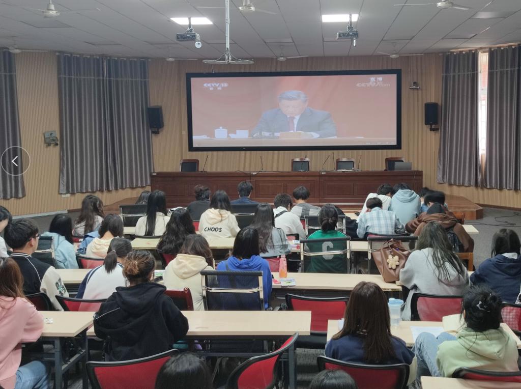 5月10日上午,庆祝中国共产主义青年团成立100周年大会在北京人民大会堂隆重举行,中共中央总书记、国家主席、中央军委主席习近平出席大会并发表重要讲话。beat365唯一官方网站团委组织师生代表在学术报告厅观看大会现场直播,各团支部第一时间均通过线上线下、集中与分散相结合的方式收看大会盛况,认真聆听学习习近平总书记重要讲话精神,畅谈并提交心得感悟。