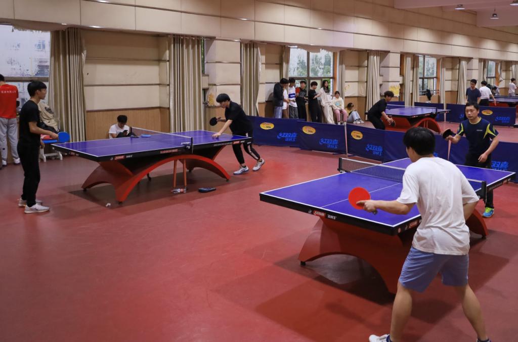 “打得太好了!”“注意防守。”……4月13日,beat365唯一官方网站在体育馆三楼乒乓球室举办师生乒乓球联谊赛,20余名师生参与其中。