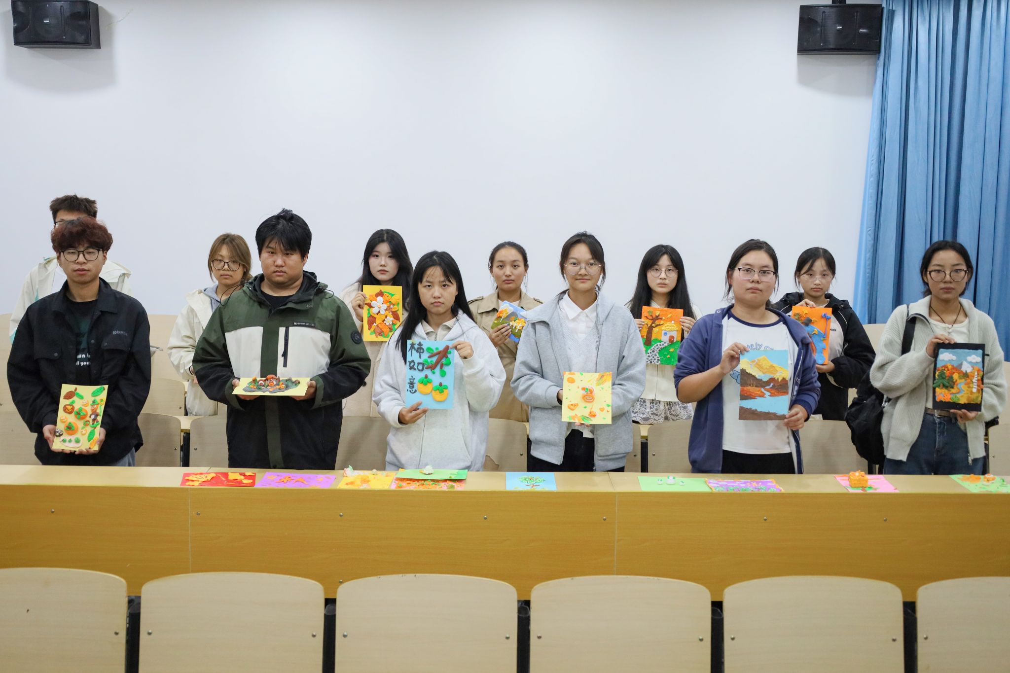 为让“解压”与“成长”并行,活动设置“专业赋能”环节,邀请学长学姐在色彩搭配、造型技巧上进行指导。“给新生讲秋日色调时,我们会把‘赭石+淡黄’的配比拆成‘先取掌心大的土块,再一点点加色’,避免他们因专业术语望而却步。”美术学专业2024(3)班的许悦说,指导时她分享自己大一捏坏三个作品的经历,让新生放下怕出错的心理负担,不再纠结作品是否完美,大胆放手创作。