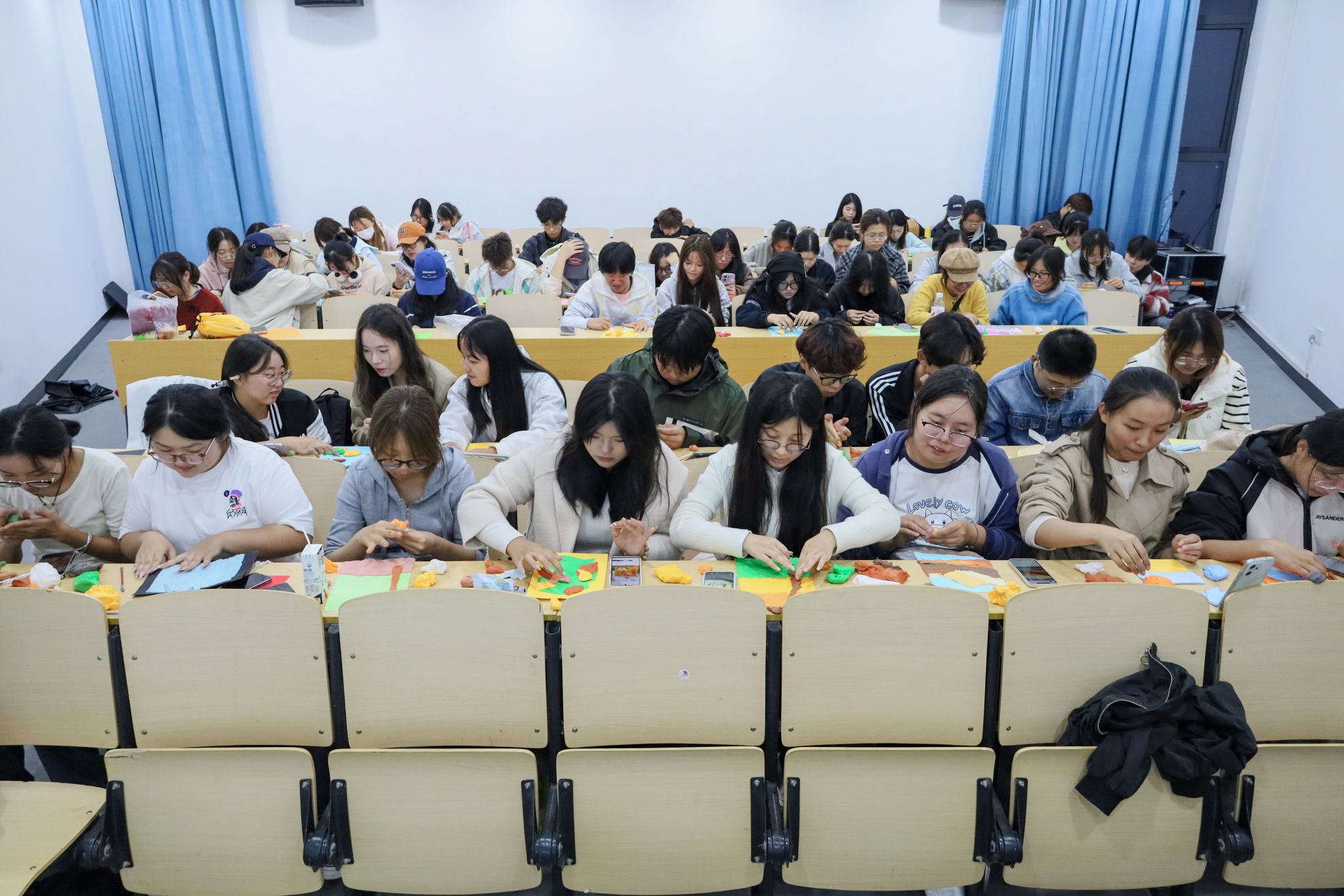 为何选择黏土作为解压载体?活动负责人、美术学专业2024(3)班的王中成解释:“黏土可塑性强,新手容易上手,创作时的‘揉捏’动作本身也能释放压力。比起传统心理讲座,这种动手创作的形式更受新生欢迎。”他表示,这些小小的黏土作品,不仅是艺术的表达,也是学生直面情绪、释放压力的窗口,让他们在制作黏土作品的过程中,慢慢找到与自我和解的方式。
