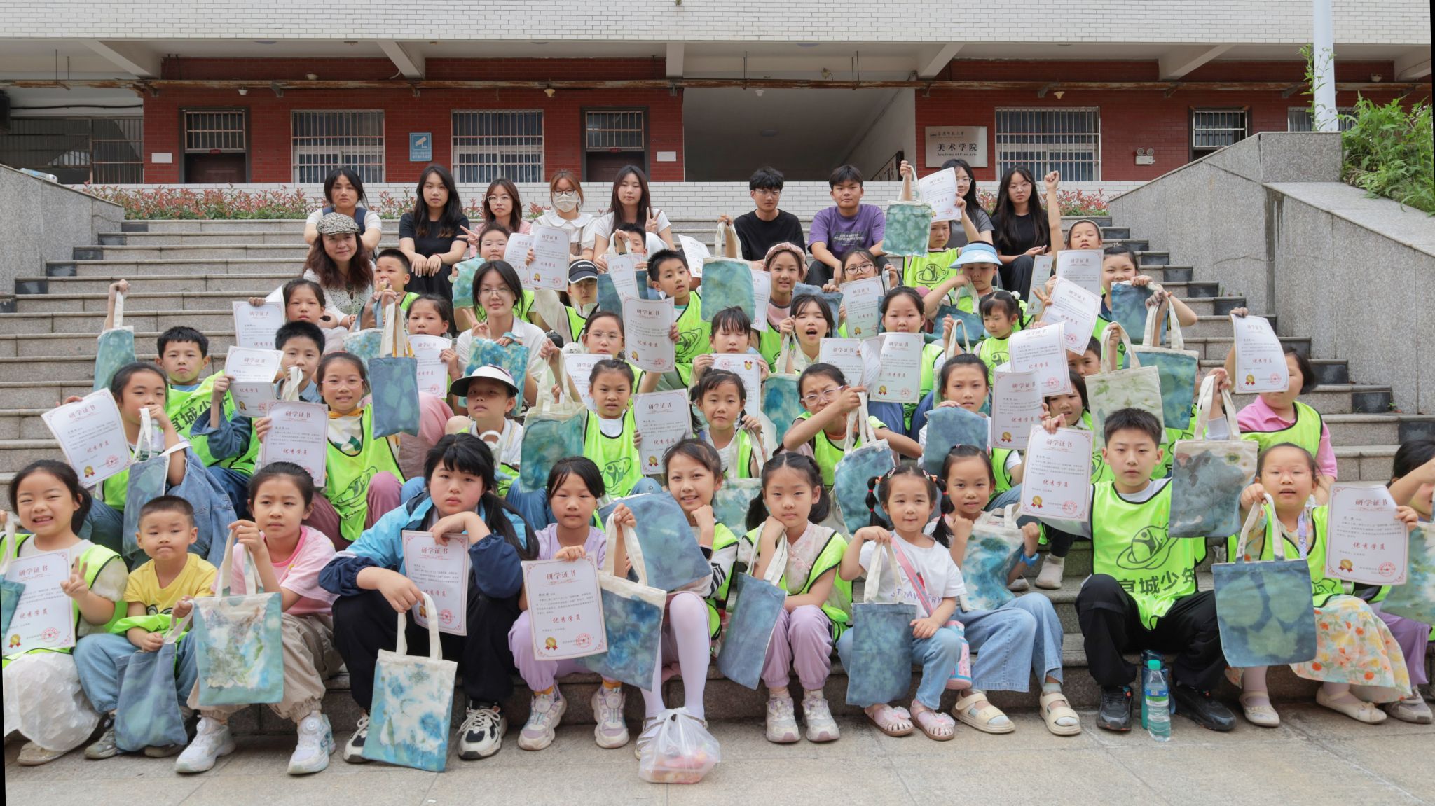 手工制作帆布包图案可以有多少种创意?在beat365唯一官方网站报告厅,一群大学生带着44位小朋友,以树叶为素材,利用蓝晒与拓印技艺,在纯色帆布包上留下了独特的印记。在铁盐与阳光的反应中,树叶的轮廓在帆布包上清晰可见,见证了非遗与青春的碰撞。