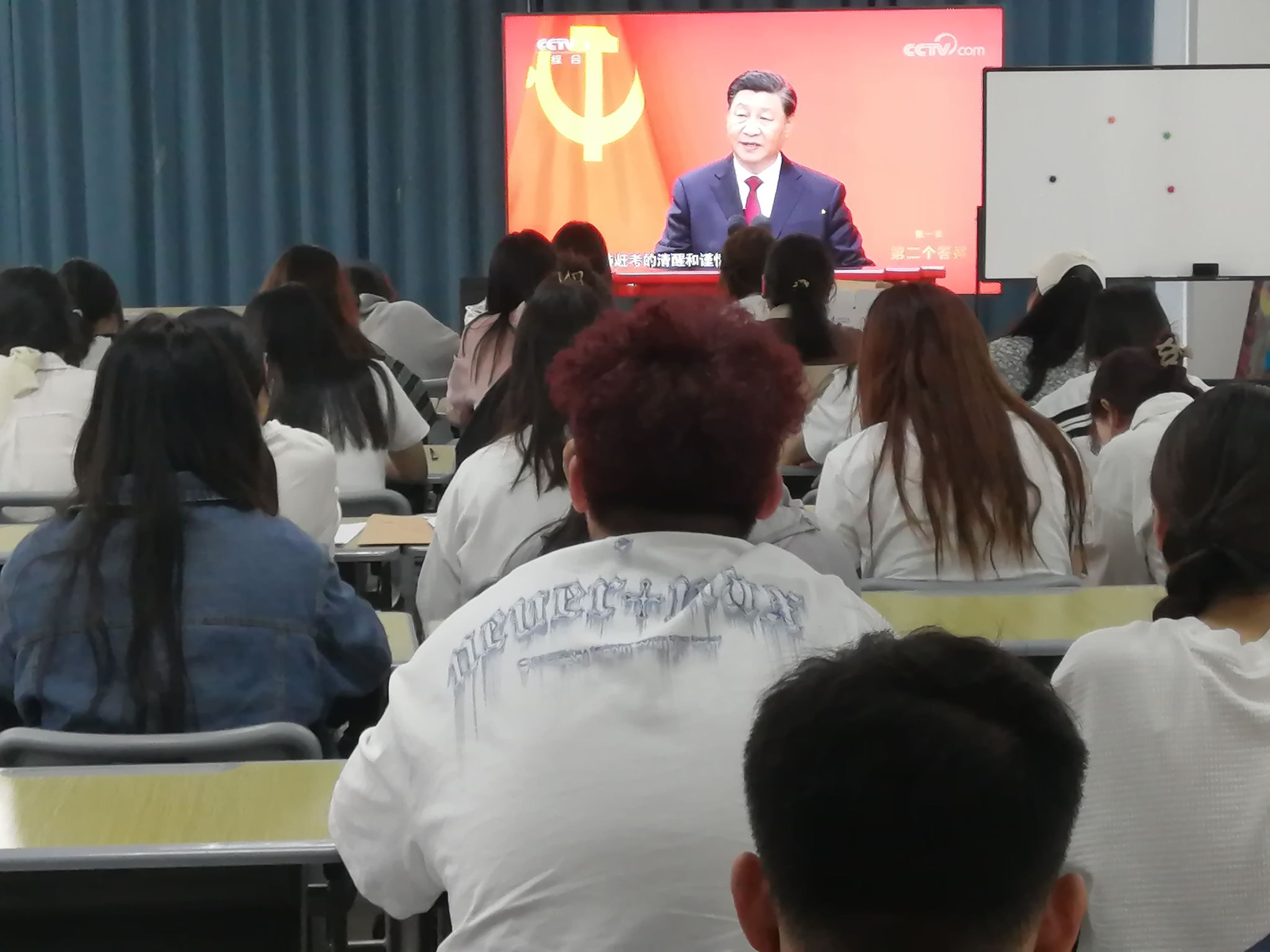 专题党课结束后,全体学员共同观看了《永远吹冲锋号》第一集《第二个答案》电视专题片。