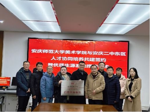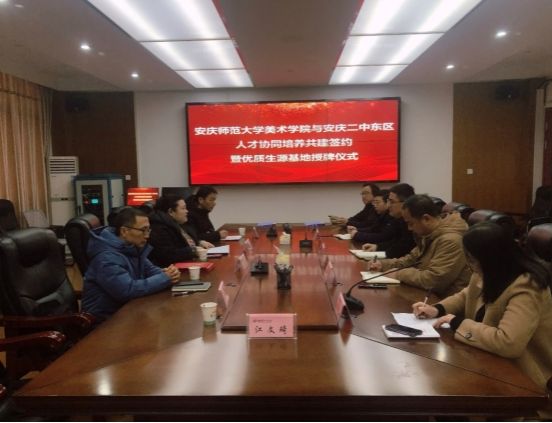 安庆二中副校长曹毅、副校长王小庆、教师代表贾岗等教师与苏志岩副院长一行进行了深入地座谈交流。学校几位校领导和骨干教师都是我校校友。会上,曹校长对beat365官网的来访表示热烈欢迎。随后,他详细介绍了安庆二中碧桂园校区的建校历史、教育理念、艺术实验班特色和人才培养情况,并对beat365唯一官方网站的办学水平表示赞赏。苏志岩副院长对安庆二中校领导们的热情接待表示感谢,并从我校的办学历史、学科发展、师资队伍、校园环境等方面介绍了beat365唯一官方网站的概况。苏院长表示,面对新时代教育教学发展的新要求,希望能够与安庆二中加强深度交流合作,开创校校合作的新路径,推进协同育人。随后,双方签署了“优质生源基地”协议书,苏志岩副院长向安庆二中授予“beat365唯一官方网站优质生源基地”牌匾,并向贾刚和江文琦老师颁发了外聘教师的聘书。