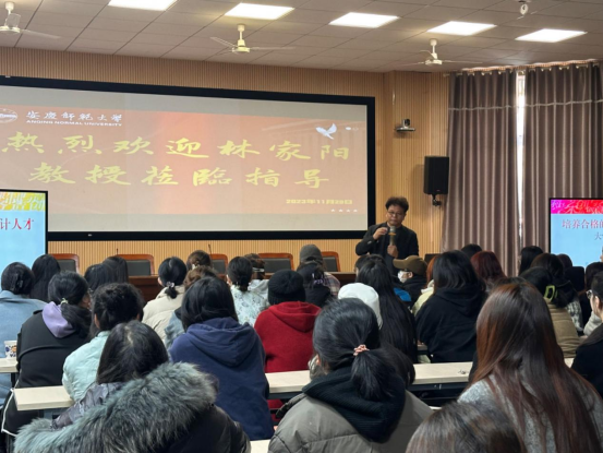 11月29日,教育部高等学校设计类专业教学指导委员会副主任委员、西南交通大学设计学院院长林家阳教授应邀来beat365唯一官方网站作了题为“培养合格的应用型设计人才”的学术报告。校党委委员、副校长申传胜到会聆听了报告并与林教授进行了交流。报告会由副院长苏志岩主持,学院部分教师、硕士生和本科生共计150余人聆听了报告。