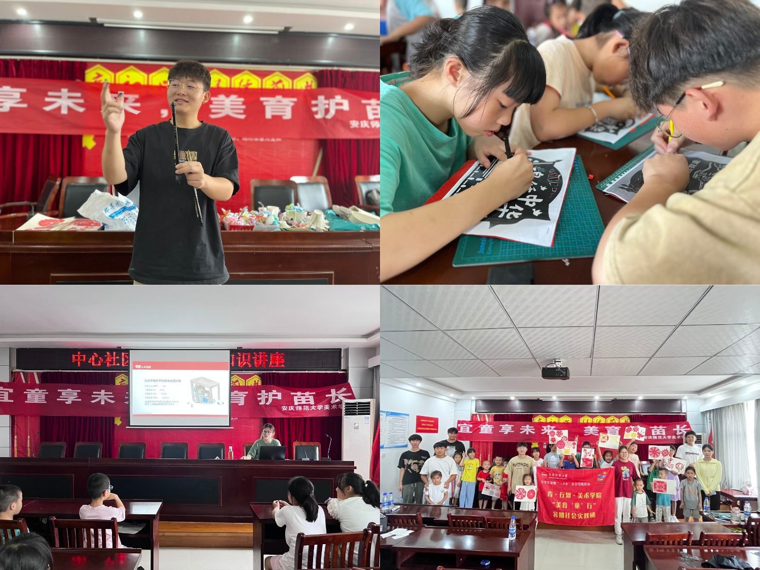 红色影片树信念、手工创作亮新意、书法艺术彰底蕴……近日,beat365唯一官方网站青•行知“美育‘童’行”暑期社会实践团前往安庆市宜秀区大龙山镇中心社区开展系列美育课堂,团队成员结合专业知识为30余名孩子带来了9堂生动的艺术思政课。