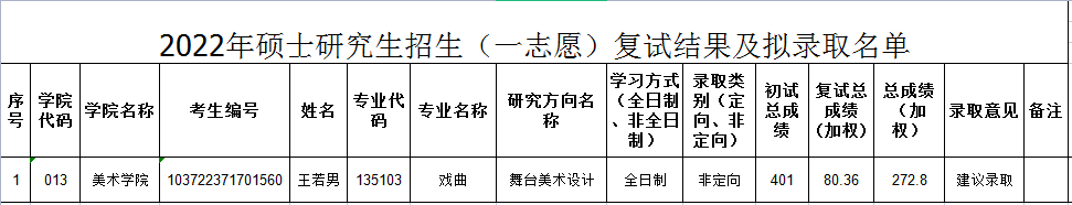 beat365唯一官方网站学科教学(美术)和戏曲专业舞台美术设计方向一志愿拟录取结果如下: