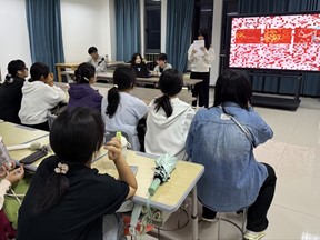 设计学专业2024(4)班团员代表崔雨晴结合自身经历,分享了从提交入团申请到成为合格团员的成长故事,以及自身在志愿服务、团学活动和班级建设中的实践经历及感受。结合beat365唯一官方网站专业特色,她分享了共青团员如何在艺术学习与创作中挺膺担当,让新生更加明确了自身责任,对入团的意义有了更直观、更深刻的认识。