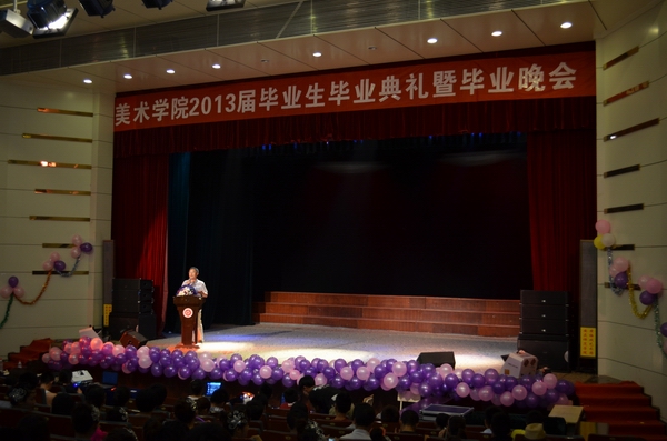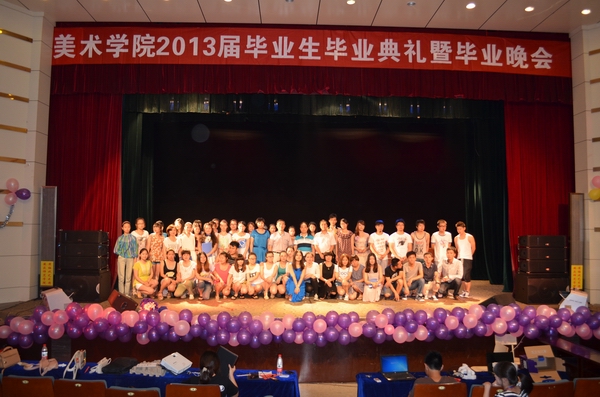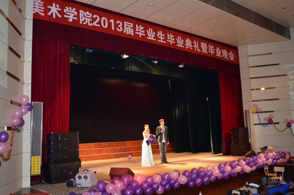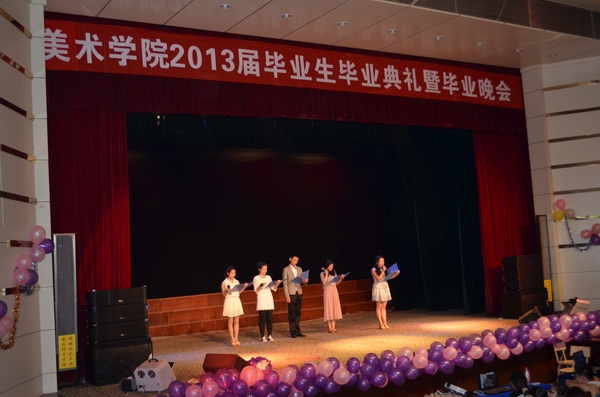 伴随着青春动感的开场舞《Invader》,晚会正式拉开序幕。一曲《惊鸿舞》轻盈、娟秀、优雅至极,美得让人赞叹不已;奔放妩媚的肚皮舞《鼓舞》让现场掌声、尖叫声不断;婀娜多姿的古典舞《风酥雨忆》让人目不暇接;歌曲串烧模仿秀给现场的观众带来不小的震撼,仿佛置身于明星演唱会的现场;相声《吃元宵》精彩绝妙的表演赢得了热烈的掌声;歌曲情景剧《致我们逝去的青春》,让大家感受到了青春的美好;动感火热的舞蹈《black Queen》因演员们高难度的动作技巧和丰富的肢体语言而引爆全场;黄梅戏表演《情稠意更稠》让大家充分体会到黄梅戏的魅力和风采;小品《扫地》取材于大学生的日常宿舍生活,反串的惊艳亮相,逗得现场观众捧腹大笑,赢得了满堂彩,而最后小品情节的主题升华令同学们不禁动容……歌曲《同桌的你》抒发了毕业生离别前的留恋和伤感;诗歌朗诵《再见了,我的大学》细数了大学四年的悲欢喜乐,刻画了美院学生的学习和生活经历,寄托了对母校的不舍和赞誉;大屏幕上播放着专门为2013届毕业生准备的VCR,再现了四年来一个个熟悉的场景……现场师生心中泛起阵阵涟漪,毕业生们共同回忆起携手相伴的青葱岁月,不禁潸然泪下。晚会在毕业生大合唱《朋友》深情的歌声中圆满落幕。熟悉的旋律,祝福的歌词,唱出了毕业生对母校的不舍和眷恋,也唱出了对未来的憧憬。