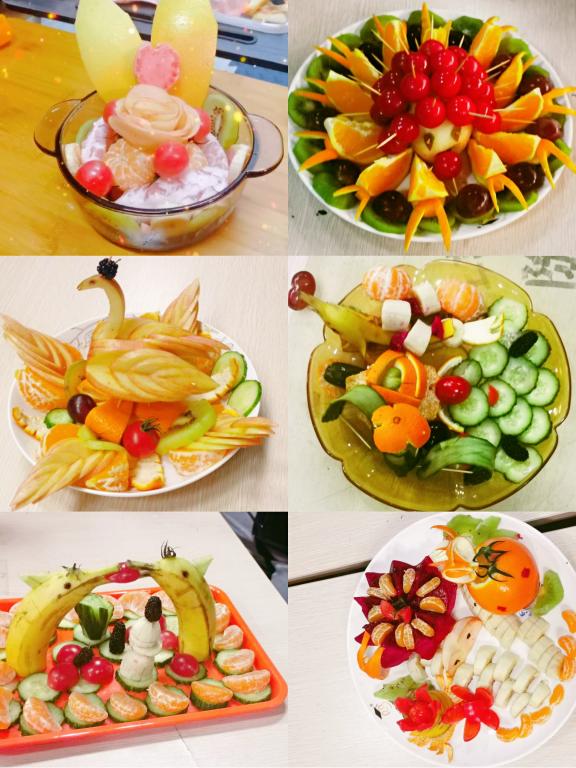 “我们有橘子,请问谁可以跟我们组换半个黄瓜吗?猕核桃也可以,谢谢!”第三组提前准备了“白鹤亮翅”造型所需的水果,但在比赛时却缺少了用于造型装饰的水果,于是小组成员纷纷化身“外交官”,成功与其他组换来了圣女果和桑葚点缀造型,作品最终取得了第二名的成绩。