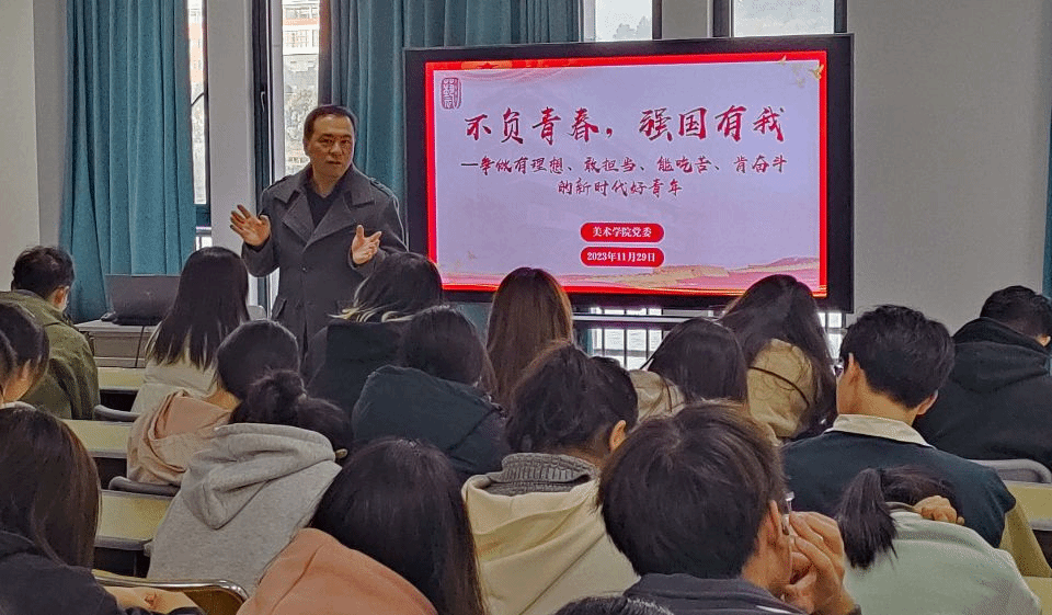 近日,beat365唯一官方网站于新美术楼召开入党启蒙教育活动,学院党委副书记金忠良作题为《不负青春,强国有我——立志做有理想、敢担当、能吃苦、肯奋斗的新时代好青年》,学院“青马班”学员、2023级新生代表共100余人参加了会议。