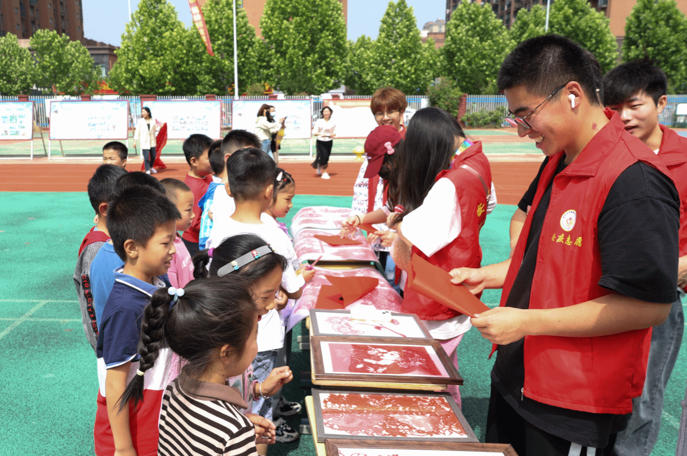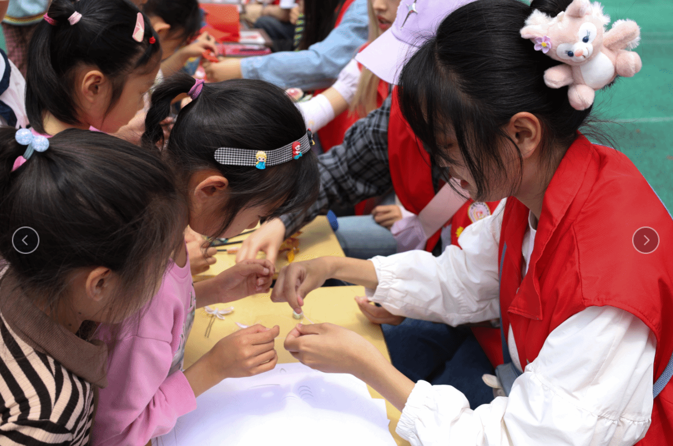 “此次科普艺术展以传承的视角出发,通过‘非遗+体验’的互动交流模式,让孩子们在动手制作中感受传统文化的魅力。”活动负责人、美术学专业2022(5)班的赵成亮介绍,本次艺术展分为缠花与剪纸两个展区,并安排学生志愿者为孩子讲解非遗作品,带领孩子进行缠花与剪纸的艺术体验。