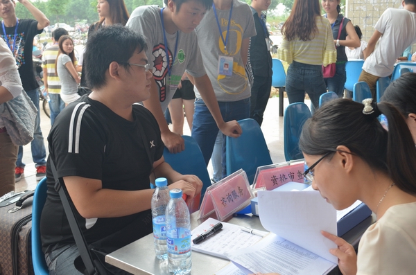 9月11日下午,迎新工作正式拉开序幕,学院领导和老师在现场指导、协调,学院全体学生干部持证上岗,挂牌服务。他们热情地从家长和学生手中接过行李物品,耐心地解答他们的各种问题,带领他们办理入学手续并引导办理入住登记、物品领取等事宜。在炎炎的烈日下,学生干部的热情、周到服务让新生和家长感到丝丝清凉,家长们疲惫的脸上也露出笑容。9月13日,学院召开了家长座谈会,向家长介绍了学院的简要情况,倾听并认真解答家长的建议和意见。