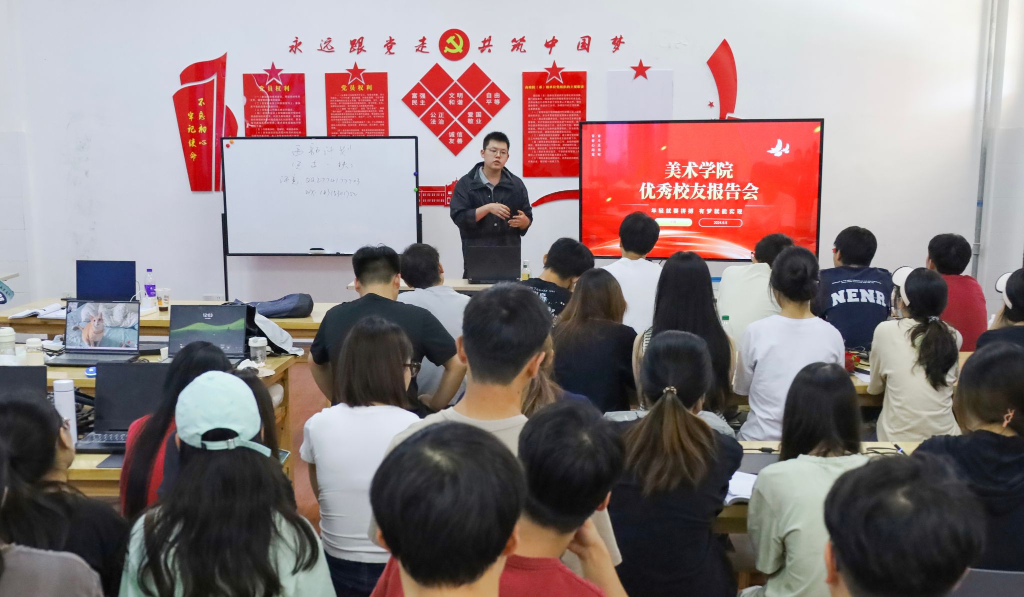 2024年9月5日,beat365唯一官方网站举办校友报告会,邀请学院2022年西部计划志愿者、2022年校“十佳青年”、2022届美术学专业优秀毕业生许竟回校交流座谈,分享参与“西部计划”的相关经验。美术学院2021级50余名学生代表到场聆听。